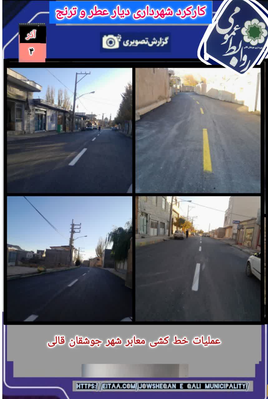 به منظور ارتقاء ایمنی عبور و مرور و ساماندهی ترافیک شهری، عملیات خط‌کشی معابر شهر جوشقان قالی توسط واحد عمران و ترافیک شهرداری انجام گردید.