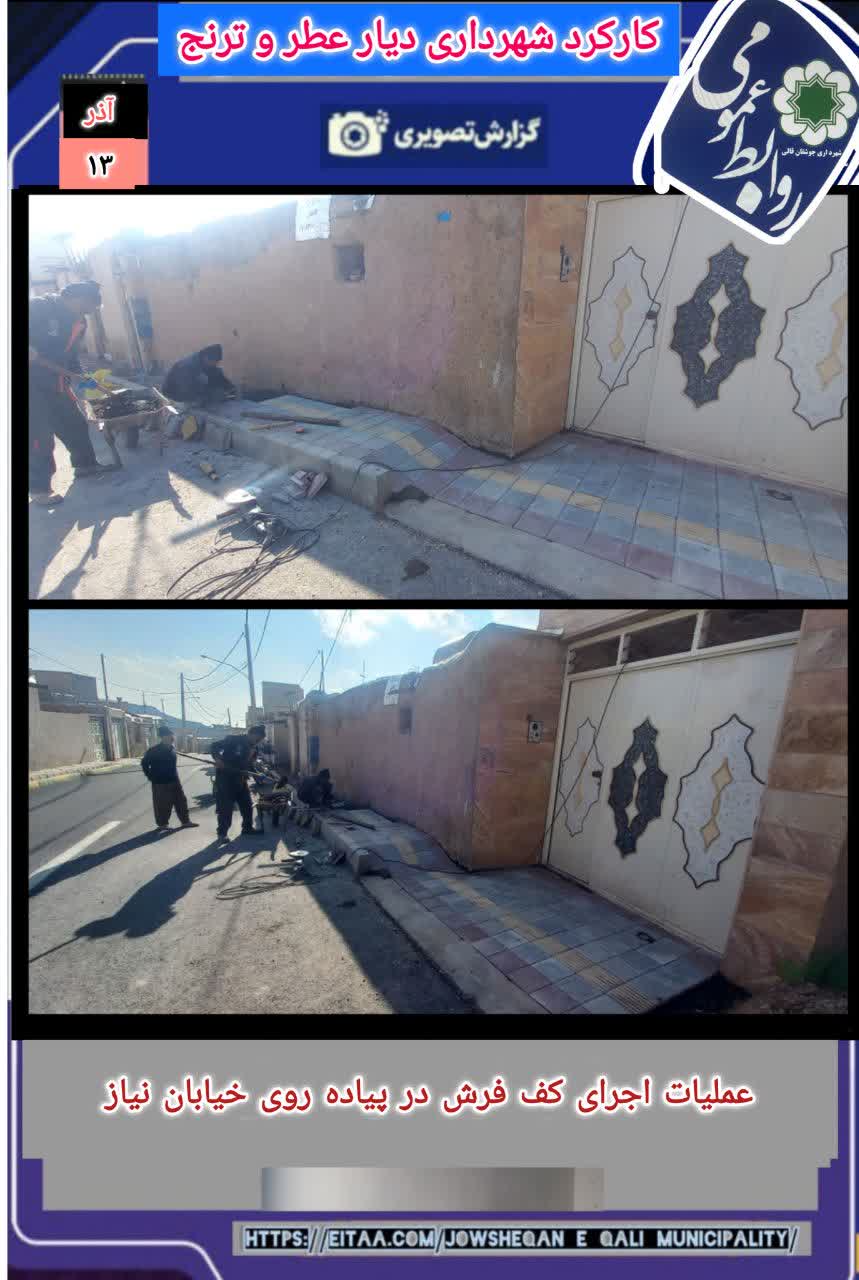 عملیات اجرای کف فرش پیاده روی خیابان نیازتوسط روابط عمومی شهرداری / آذر 13, 1404 🔸عمران و شهرسازی 🔸 عملیات اجرای کف فرش پیاده روی خیابان نیاز ✍️روابط عمومی شهرداری و شورای اسلامی شهر جوشقان قالی